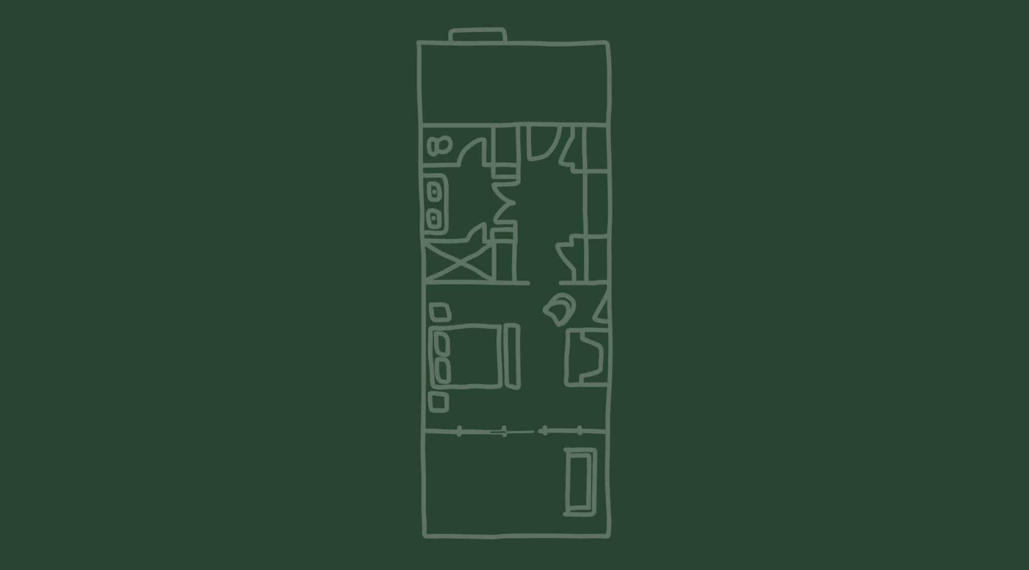 This beautifully appointed room offers a king-size bed, a stylish bathroom with a shower, and a covered porch to relax and breathe in the mountain air. Sleeps 2. Starting at $650.